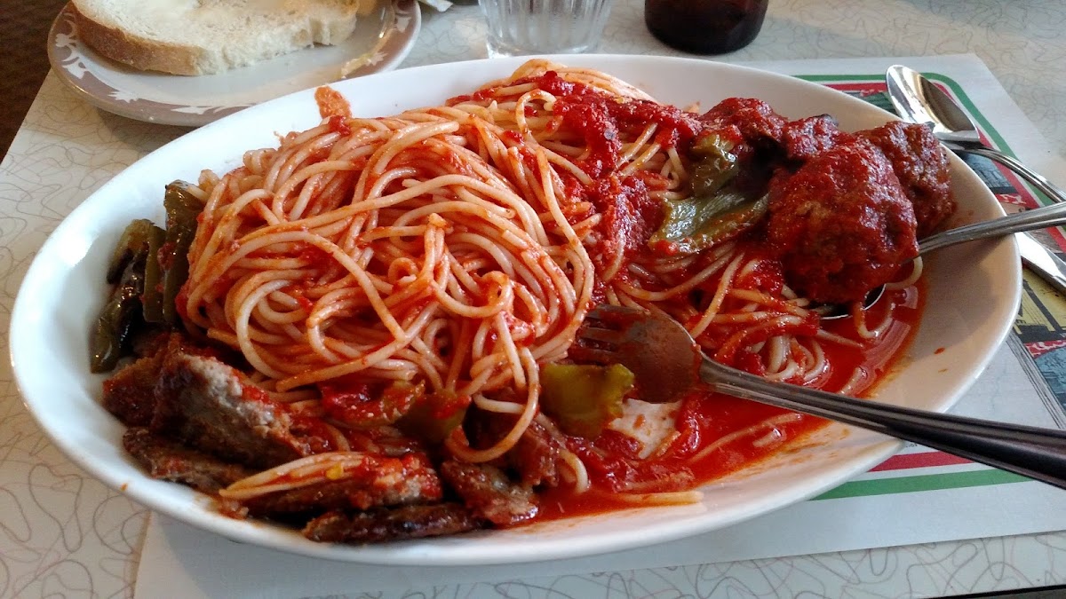 The food is delicious! Homemade pasta, very fresh ingredients. Vegetarian options, and they can customize pasta dishes for vegetarians. My custom dish was a homemade noodle with sauteed broccoli and mushrooms in a garlic and oil sauce. It was excellent. Vegetarians please note that there is no marinara sauce: the red sauce is cooked with meatballs. Vegans - not a good choice for you. The pasta is made with egg. Super friendly service. Comfortable, small town atmosphere where everybody knows everybody. We felt welcome even though we were just passing through.